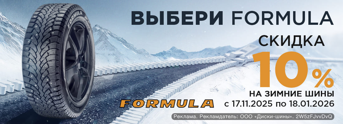 - При покупке комплекта (от 4-х) зимних шин FORMULA (Formula Ice, Formula Ice FR) предоставляется скидка 10%.